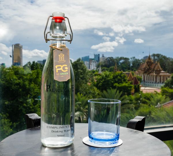 Palace Gate Hotel & Resort’s commitment to the environment by lowering the waste and use of plastic at its hotel by using glass water bottles.